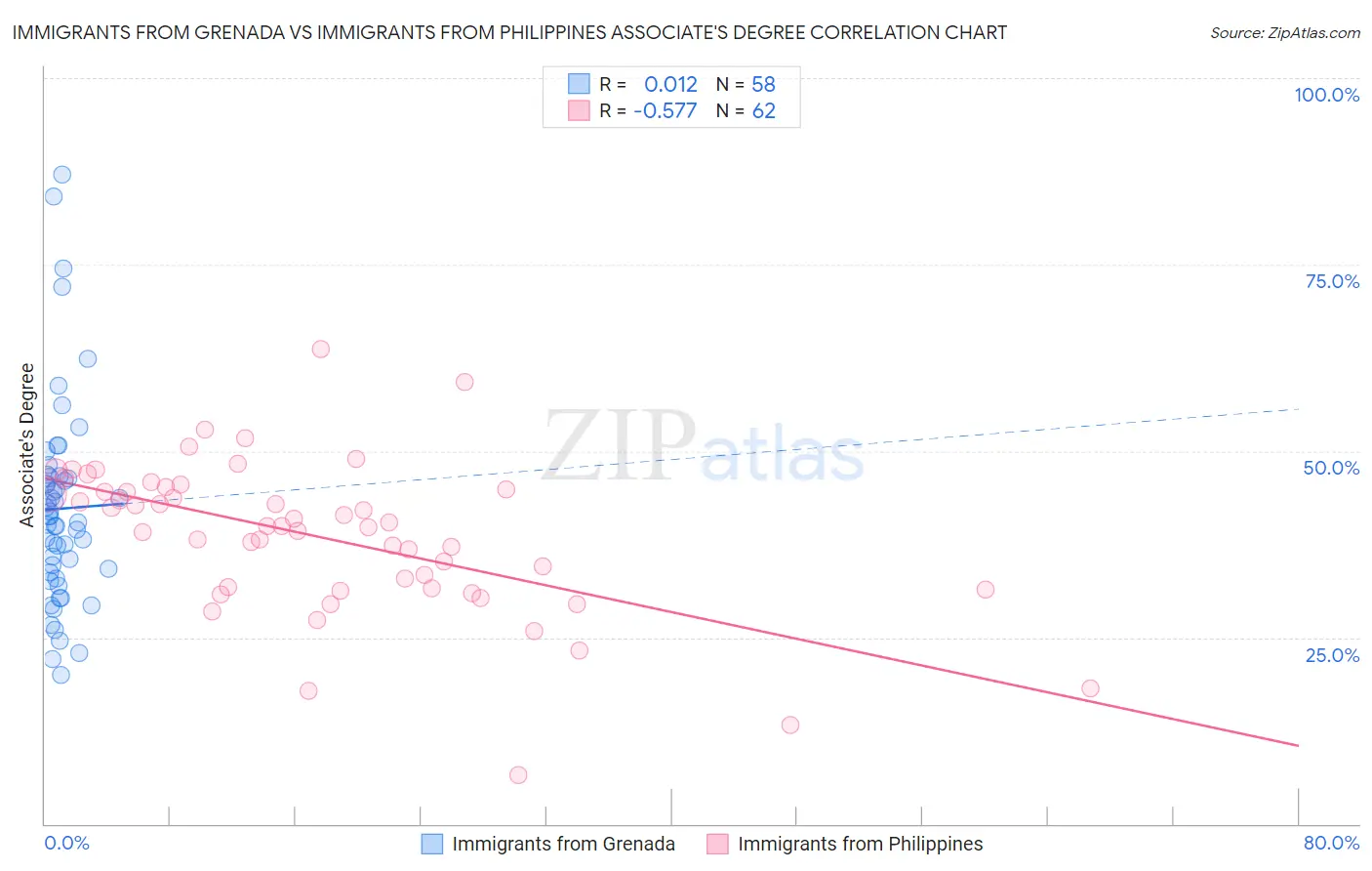 Immigrants from Grenada vs Immigrants from Philippines Associate's Degree Correlation Chart