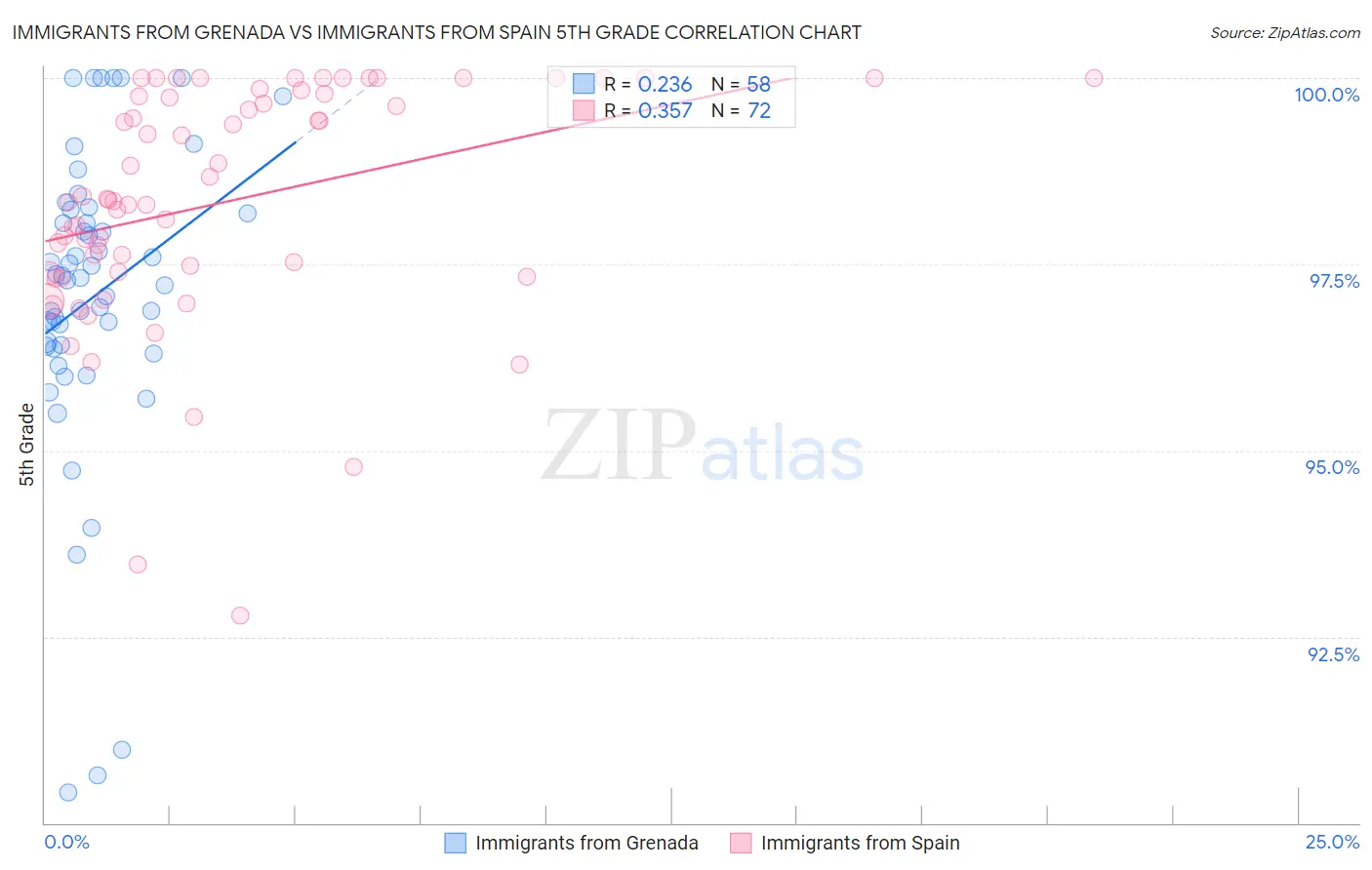Immigrants from Grenada vs Immigrants from Spain 5th Grade Correlation Chart