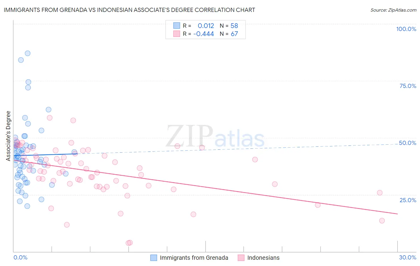 Immigrants from Grenada vs Indonesian Associate's Degree Correlation Chart