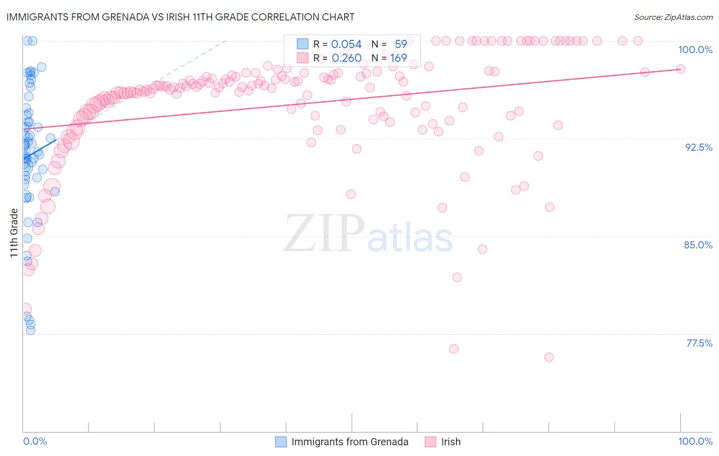 Immigrants from Grenada vs Irish 11th Grade Correlation Chart