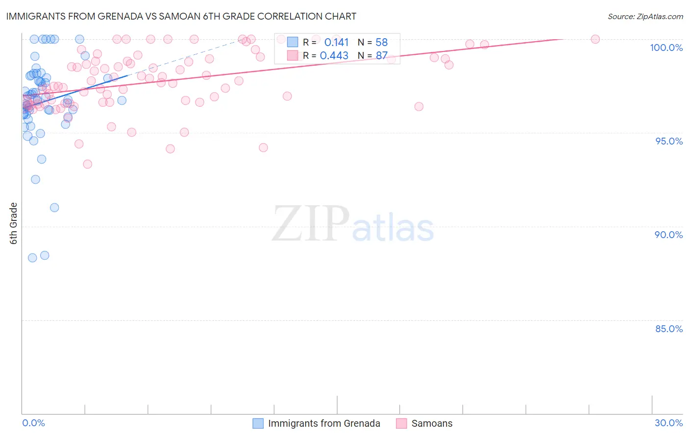 Immigrants from Grenada vs Samoan 6th Grade Correlation Chart
