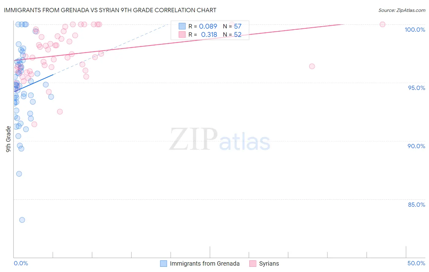 Immigrants from Grenada vs Syrian 9th Grade Correlation Chart