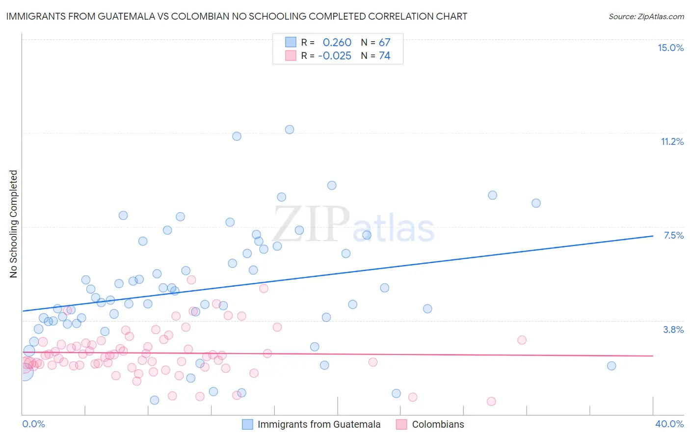 Immigrants from Guatemala vs Colombian No Schooling Completed Correlation Chart