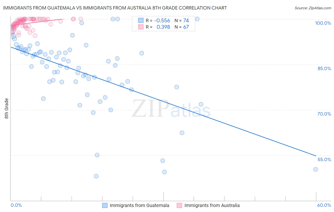 Immigrants from Guatemala vs Immigrants from Australia 8th Grade Correlation Chart