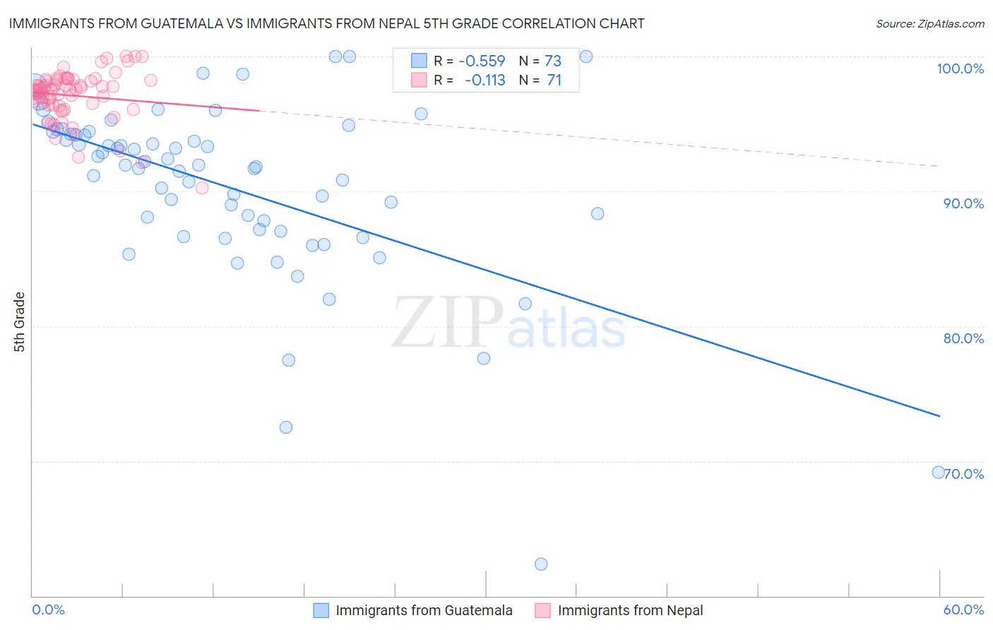 Immigrants from Guatemala vs Immigrants from Nepal 5th Grade Correlation Chart