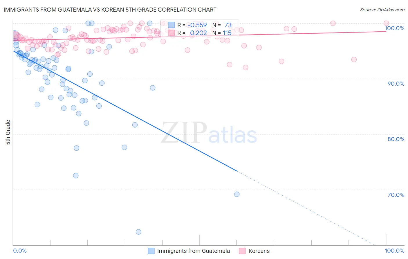 Immigrants from Guatemala vs Korean 5th Grade Correlation Chart