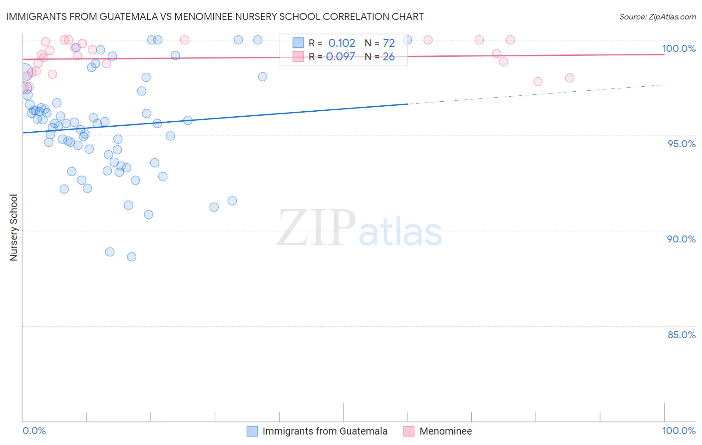 Immigrants from Guatemala vs Menominee Nursery School Correlation Chart