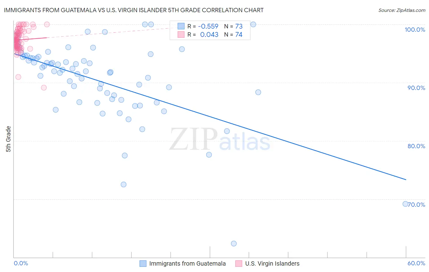 Immigrants from Guatemala vs U.S. Virgin Islander 5th Grade Correlation Chart