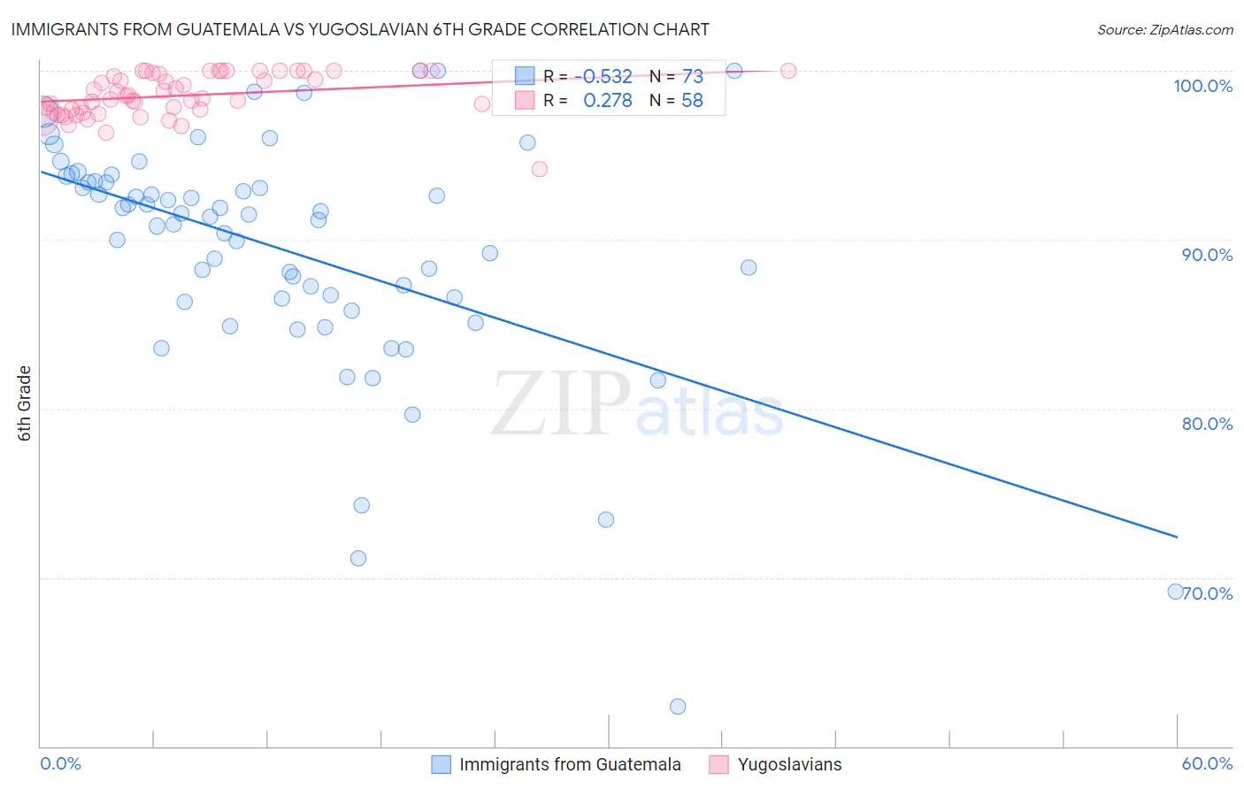 Immigrants from Guatemala vs Yugoslavian 6th Grade Correlation Chart
