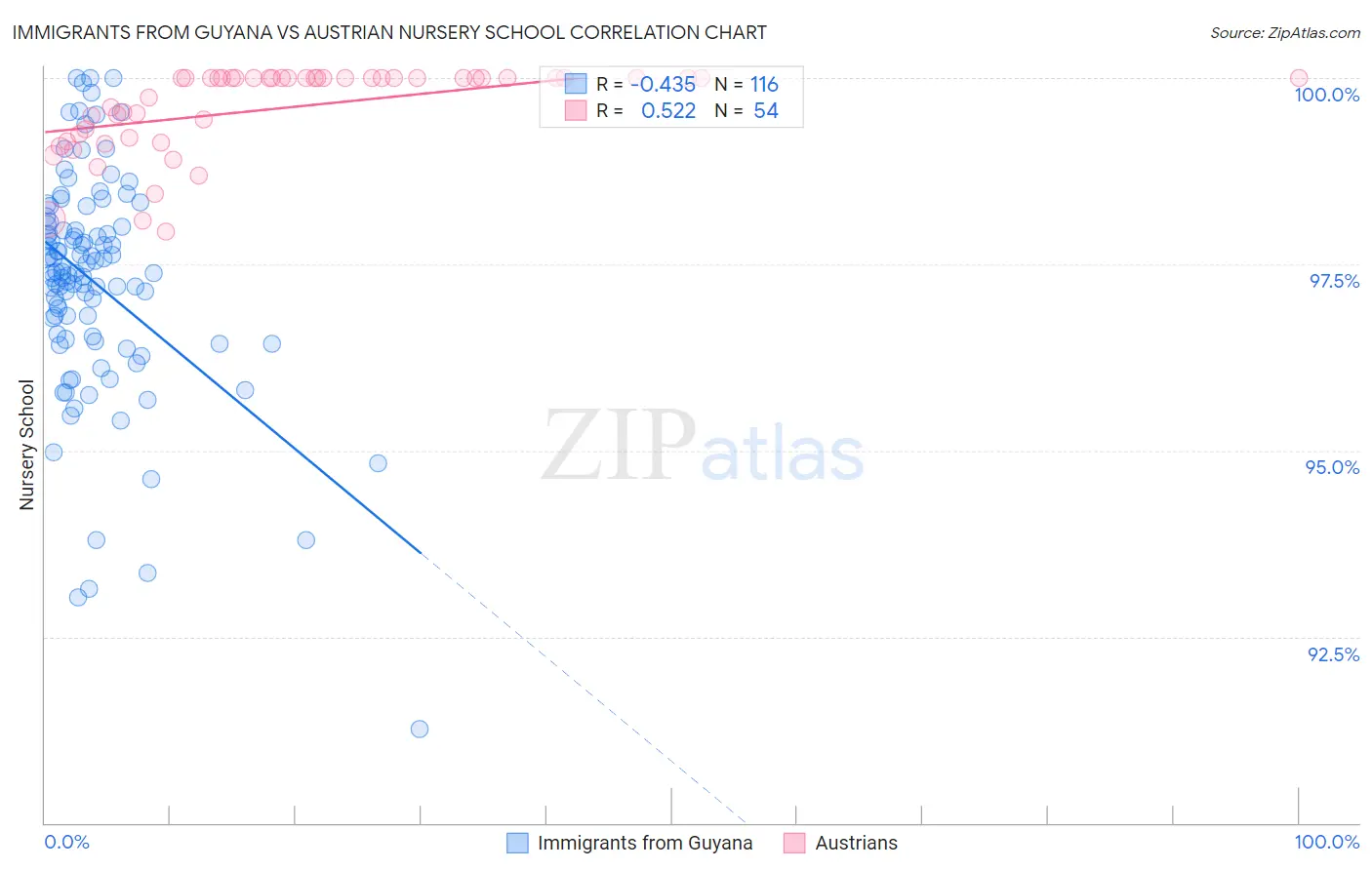 Immigrants from Guyana vs Austrian Nursery School Correlation Chart
