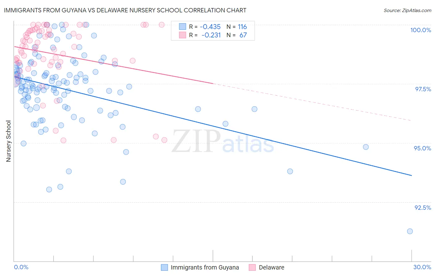 Immigrants from Guyana vs Delaware Nursery School Correlation Chart