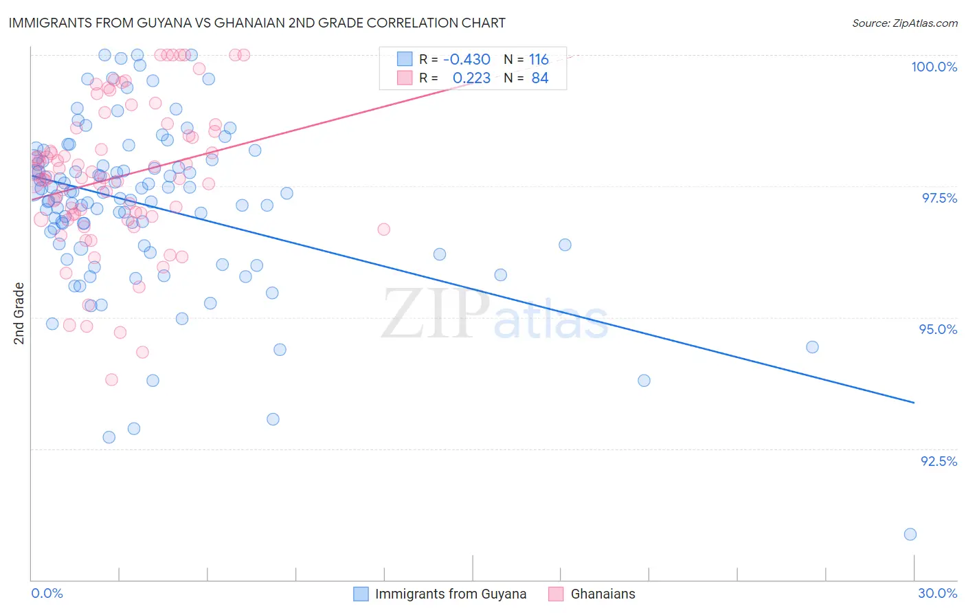 Immigrants from Guyana vs Ghanaian 2nd Grade Correlation Chart
