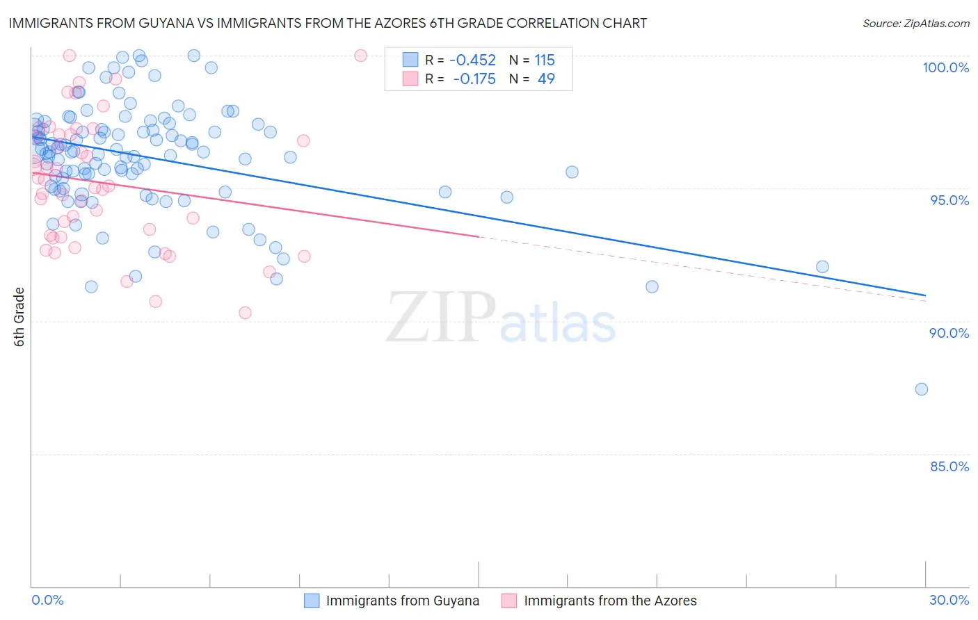 Immigrants from Guyana vs Immigrants from the Azores 6th Grade Correlation Chart