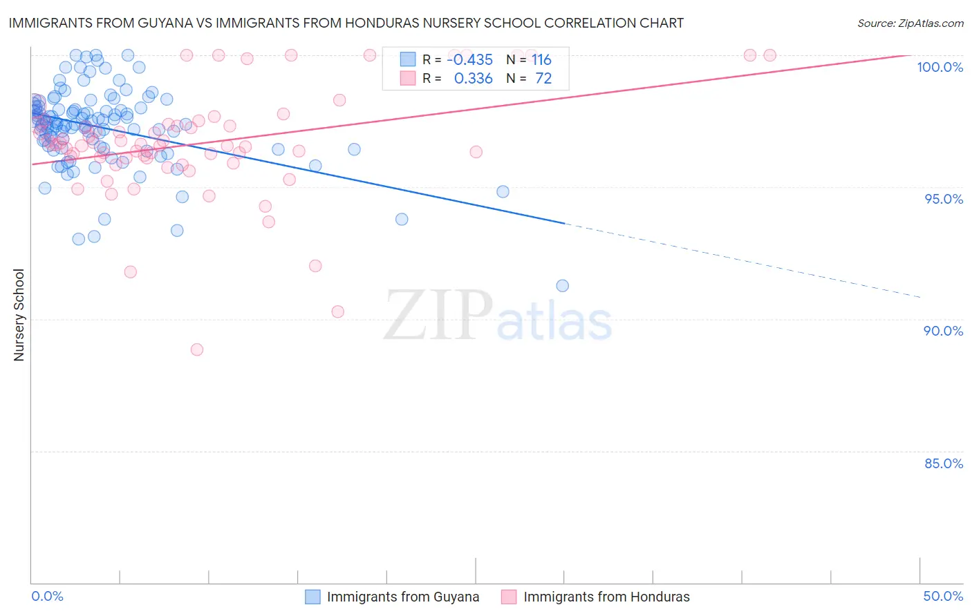 Immigrants from Guyana vs Immigrants from Honduras Nursery School Correlation Chart