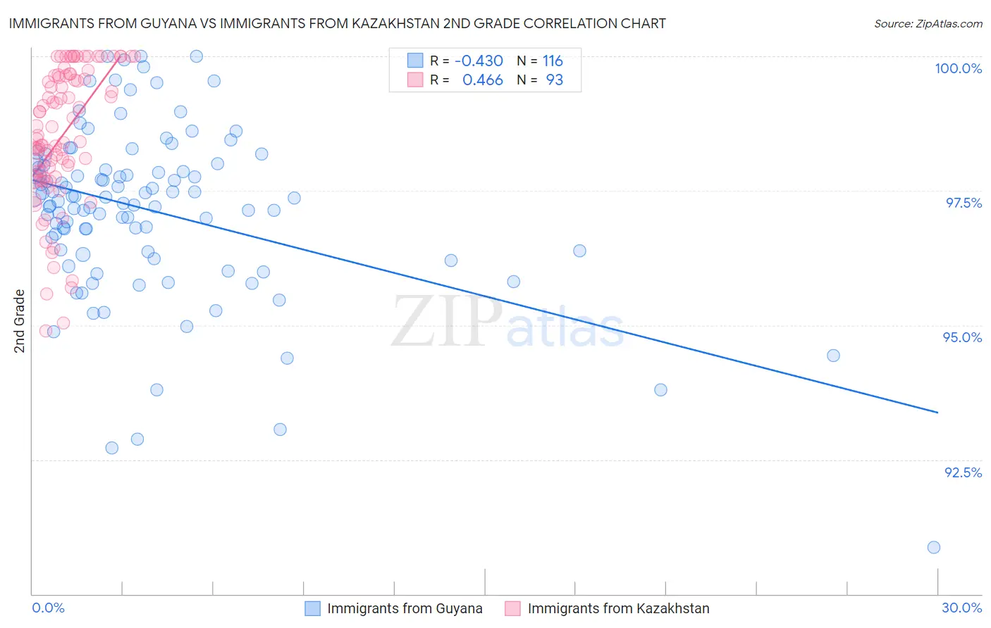 Immigrants from Guyana vs Immigrants from Kazakhstan 2nd Grade Correlation Chart