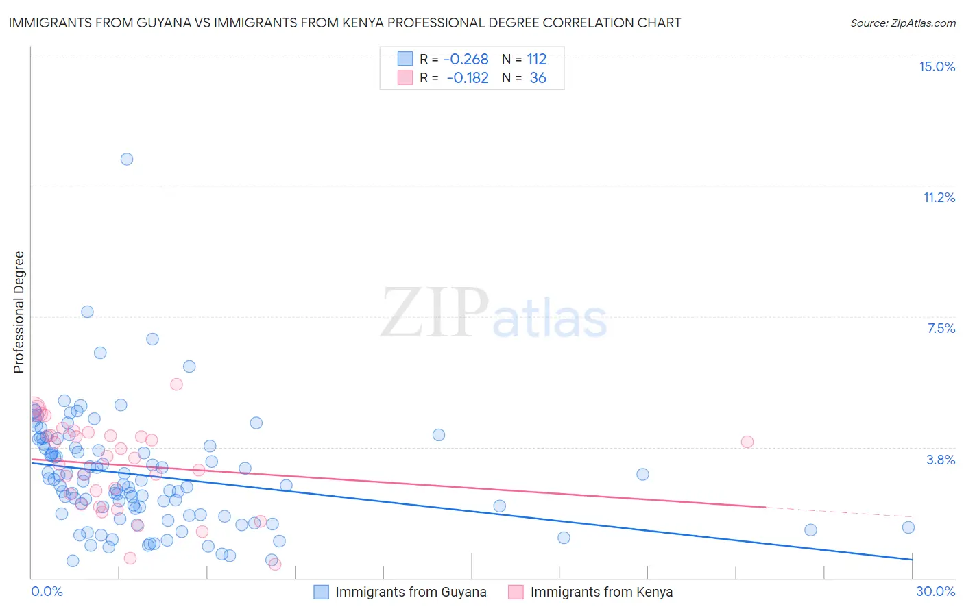 Immigrants from Guyana vs Immigrants from Kenya Professional Degree Correlation Chart