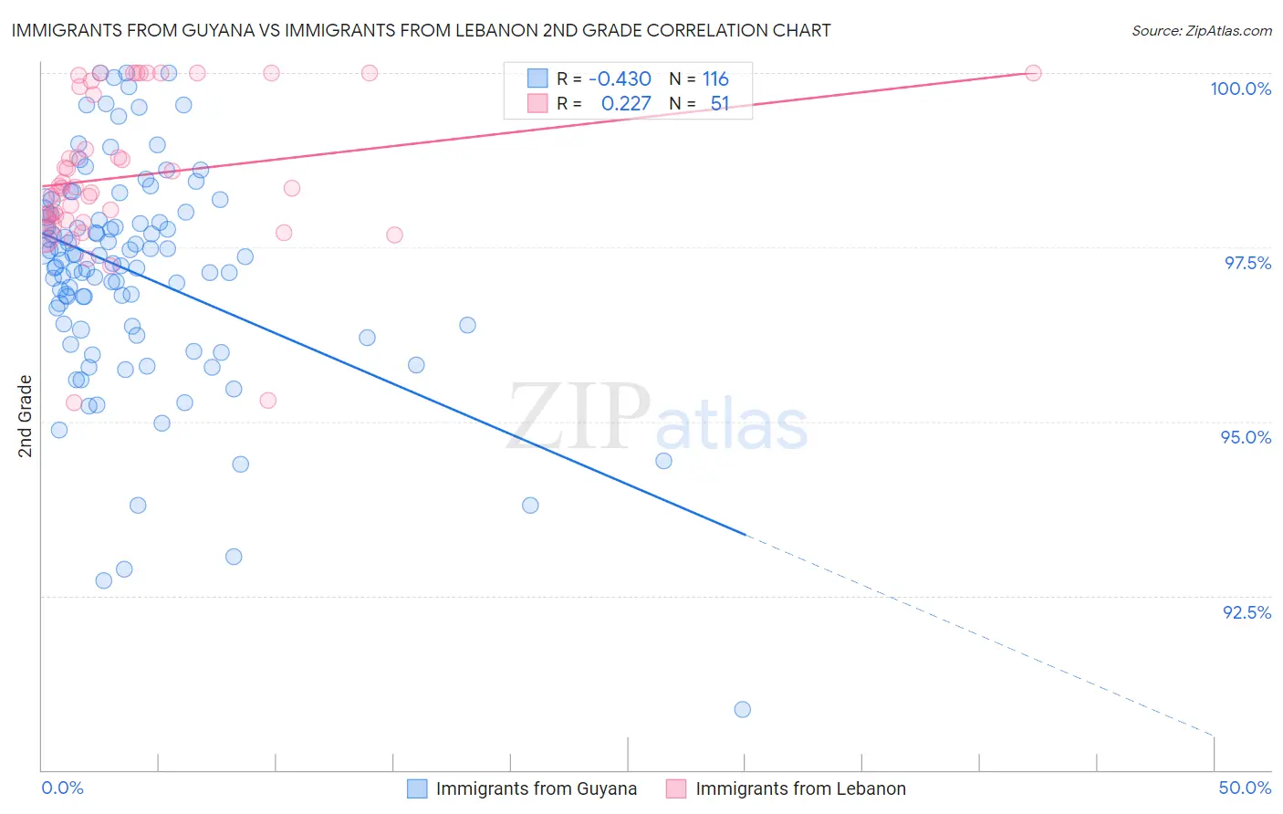 Immigrants from Guyana vs Immigrants from Lebanon 2nd Grade Correlation Chart