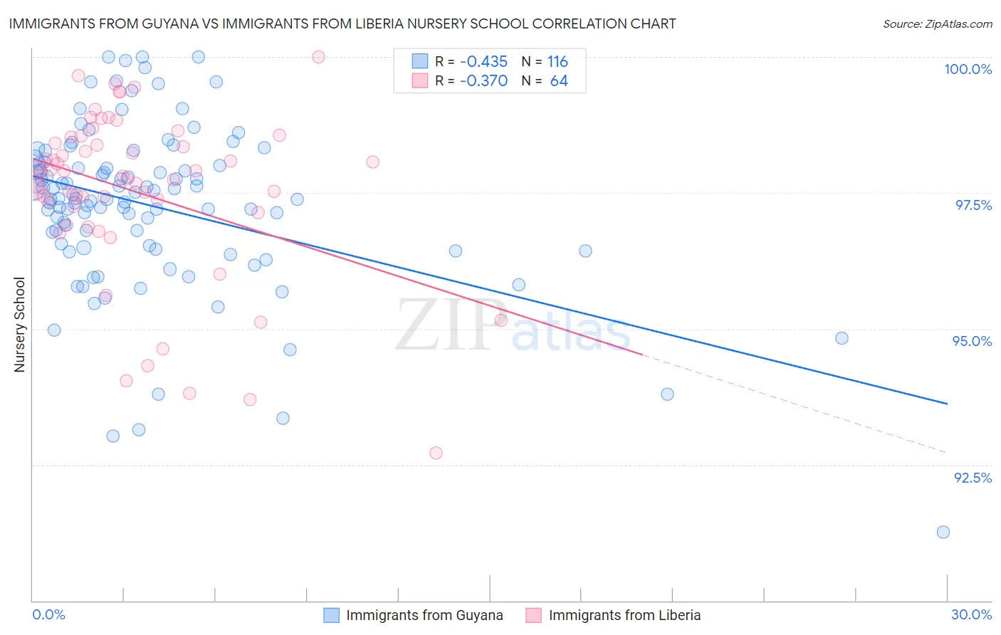 Immigrants from Guyana vs Immigrants from Liberia Nursery School Correlation Chart