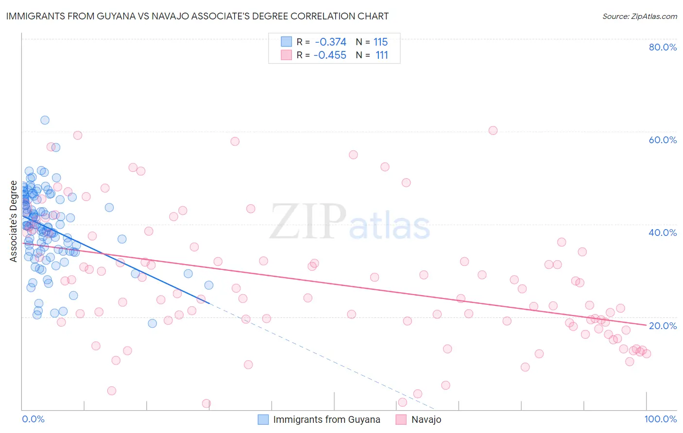 Immigrants from Guyana vs Navajo Associate's Degree Correlation Chart