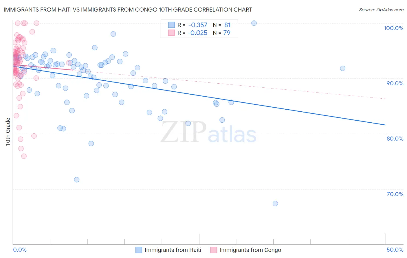 Immigrants from Haiti vs Immigrants from Congo 10th Grade Correlation Chart