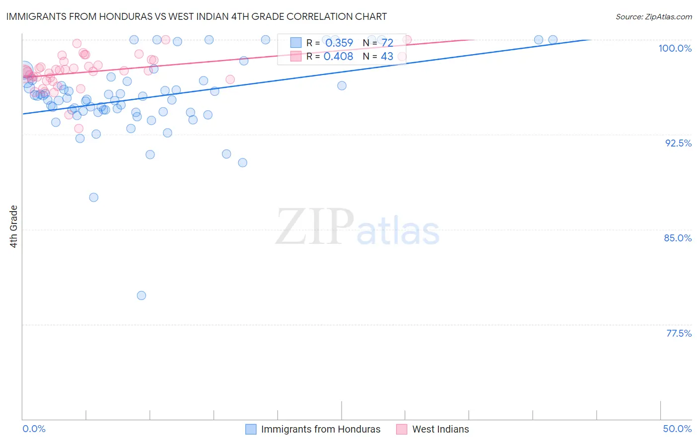 Immigrants from Honduras vs West Indian 4th Grade Correlation Chart