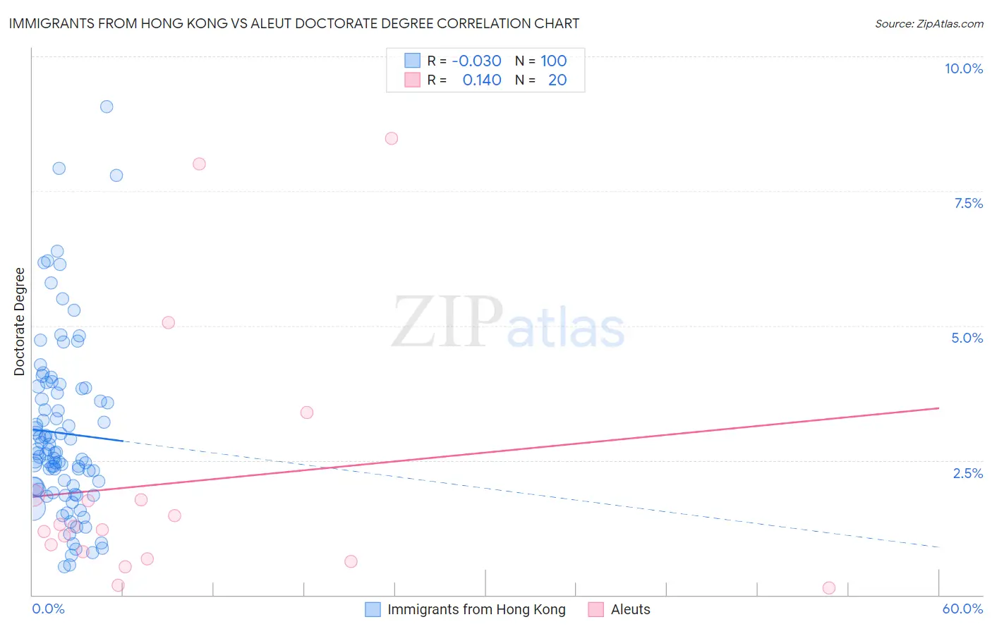 Immigrants from Hong Kong vs Aleut Doctorate Degree Correlation Chart