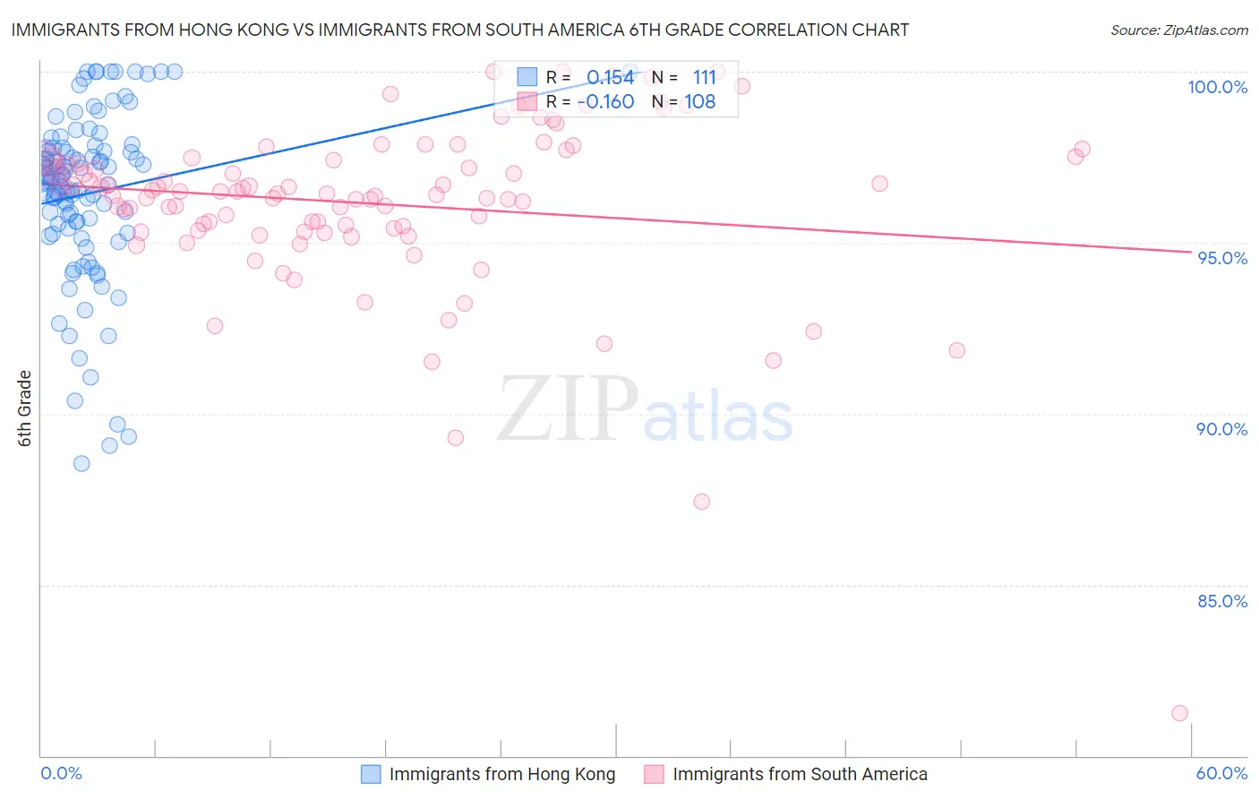 Immigrants from Hong Kong vs Immigrants from South America 6th Grade Correlation Chart