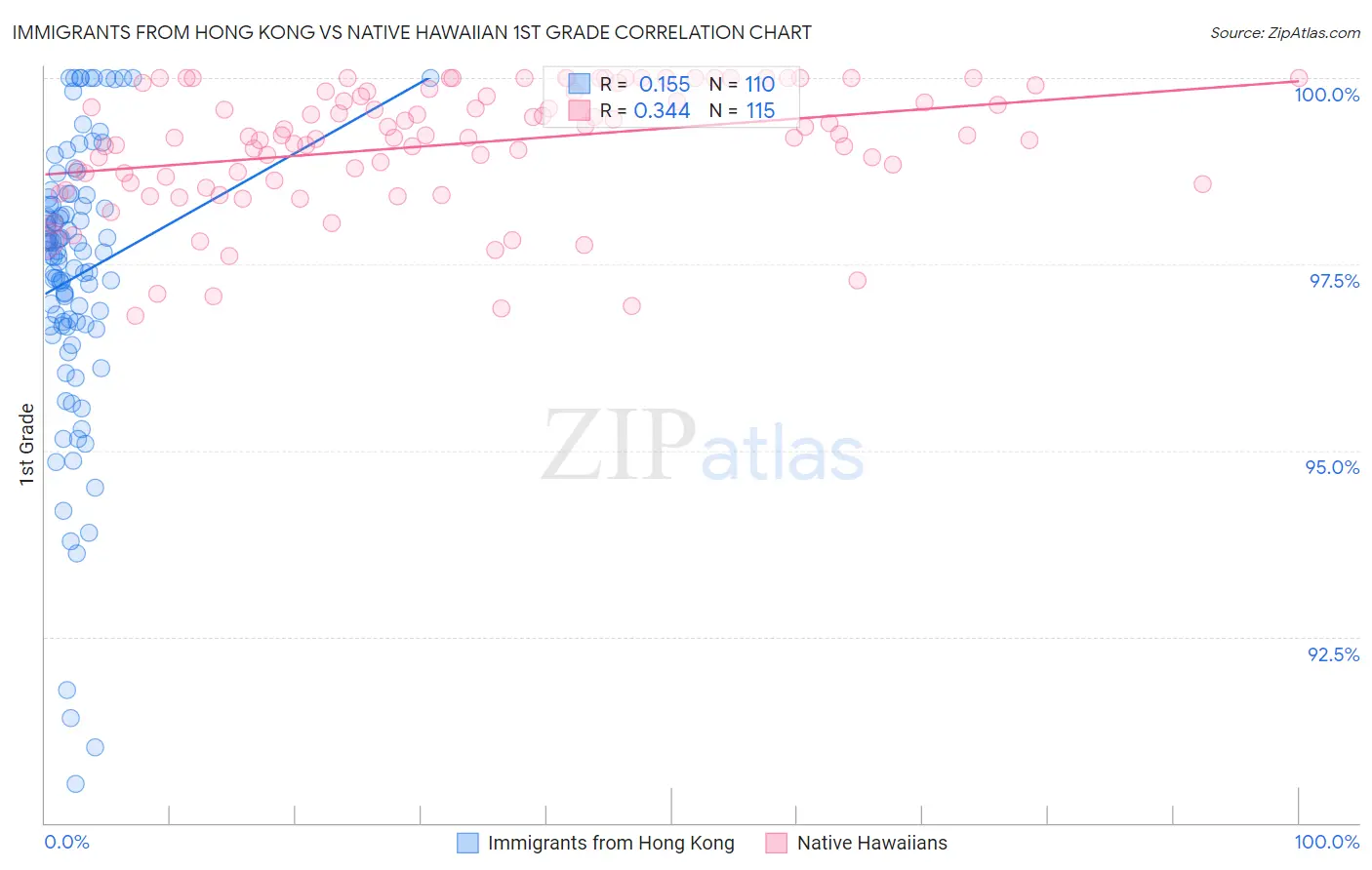 Immigrants from Hong Kong vs Native Hawaiian 1st Grade