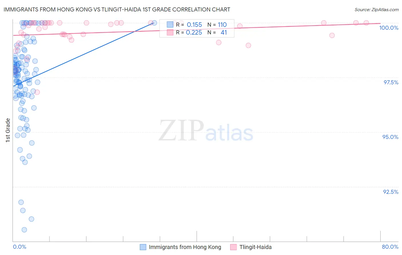 Immigrants from Hong Kong vs Tlingit-Haida 1st Grade Correlation Chart