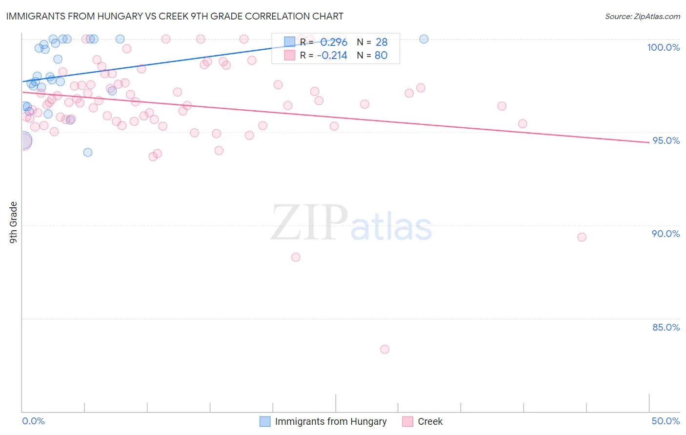 Immigrants from Hungary vs Creek 9th Grade Correlation Chart