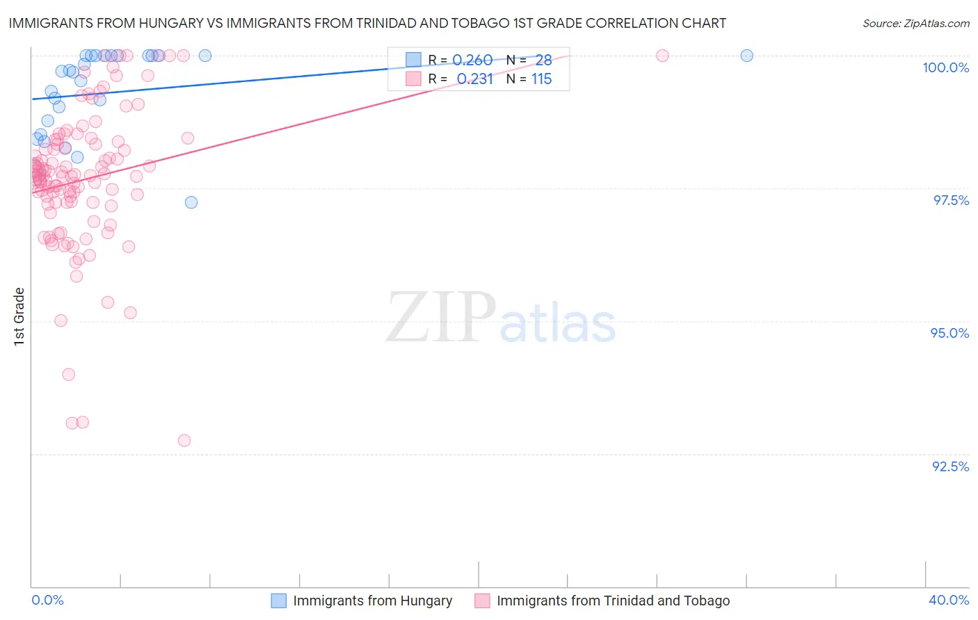 Immigrants from Hungary vs Immigrants from Trinidad and Tobago 1st Grade Correlation Chart