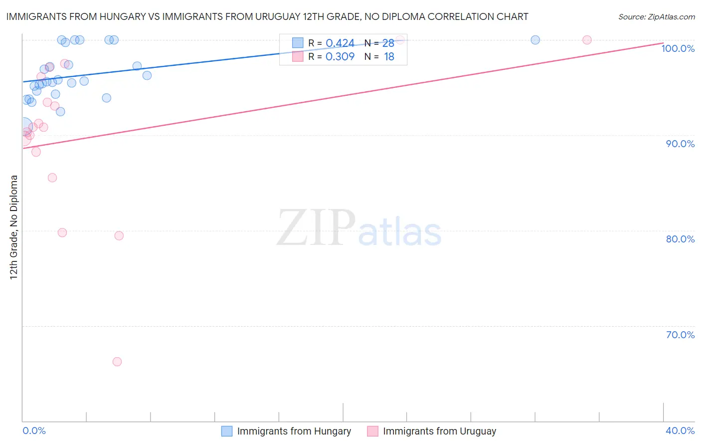 Immigrants from Hungary vs Immigrants from Uruguay 12th Grade, No Diploma Correlation Chart