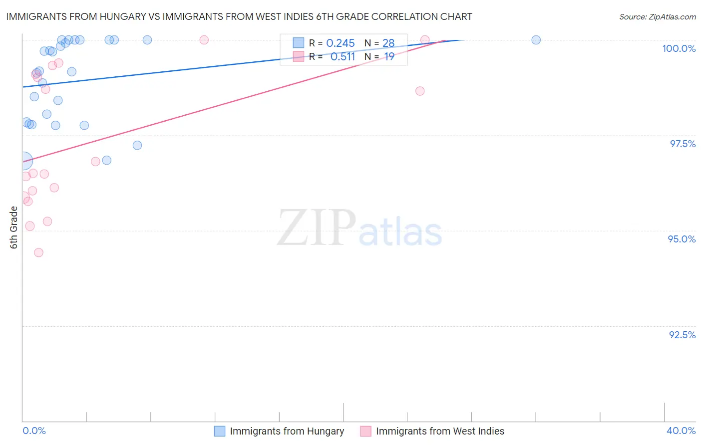 Immigrants from Hungary vs Immigrants from West Indies 6th Grade Correlation Chart