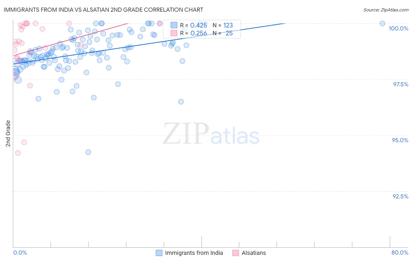Immigrants from India vs Alsatian 2nd Grade Correlation Chart