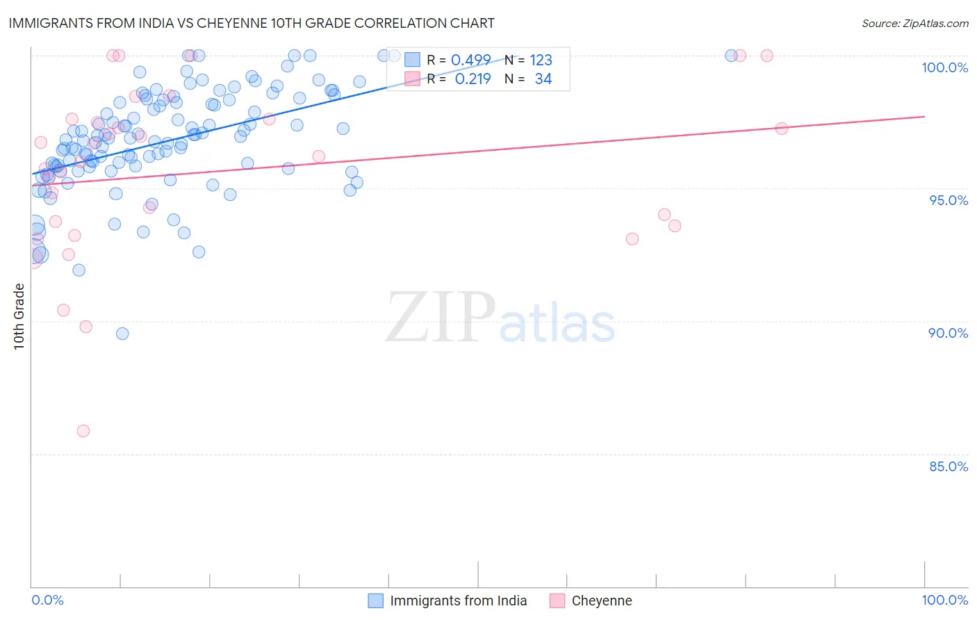 Immigrants from India vs Cheyenne 10th Grade Correlation Chart