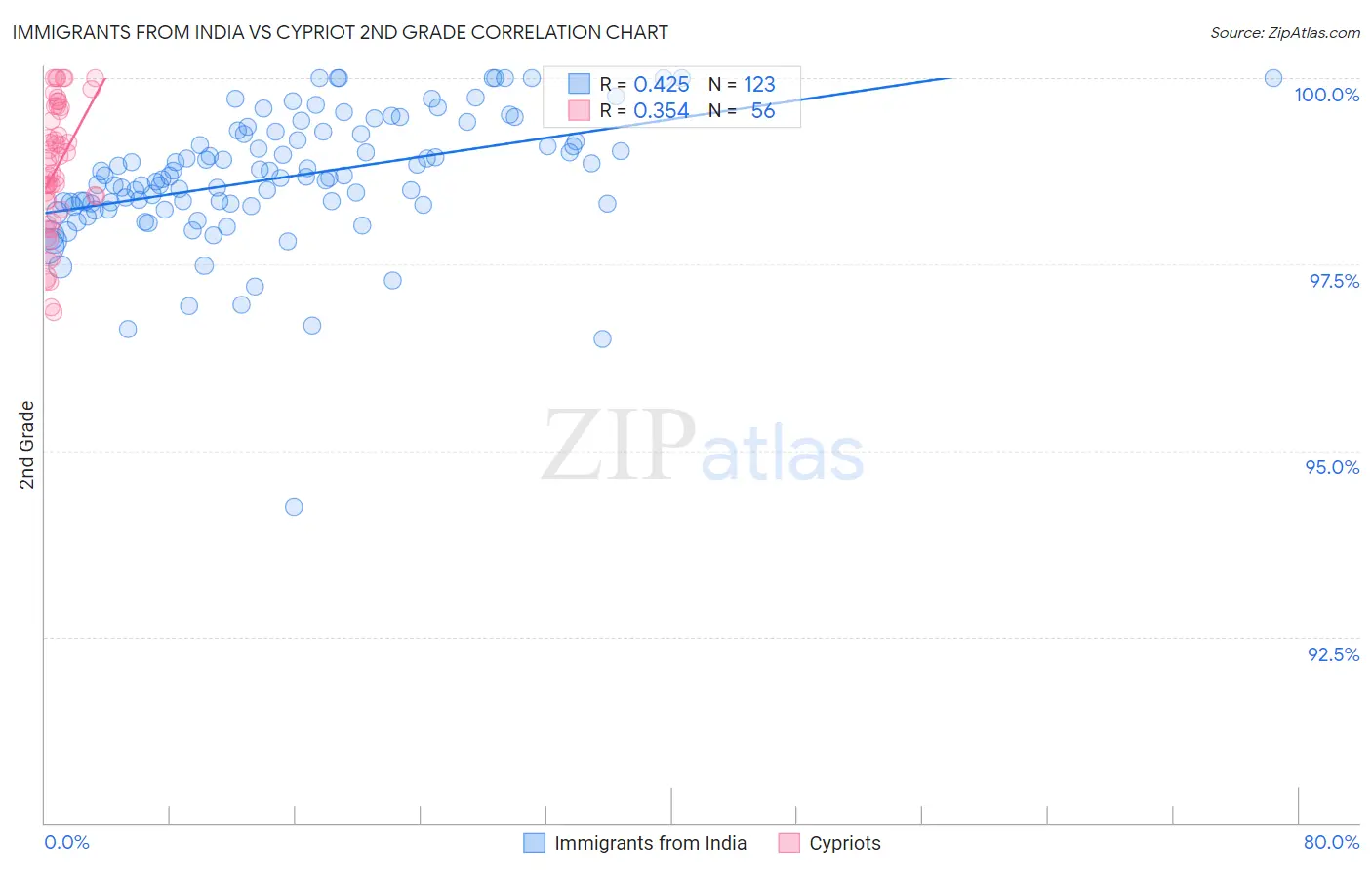 Immigrants from India vs Cypriot 2nd Grade Correlation Chart