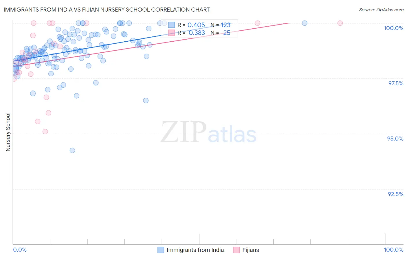 Immigrants from India vs Fijian Nursery School Correlation Chart