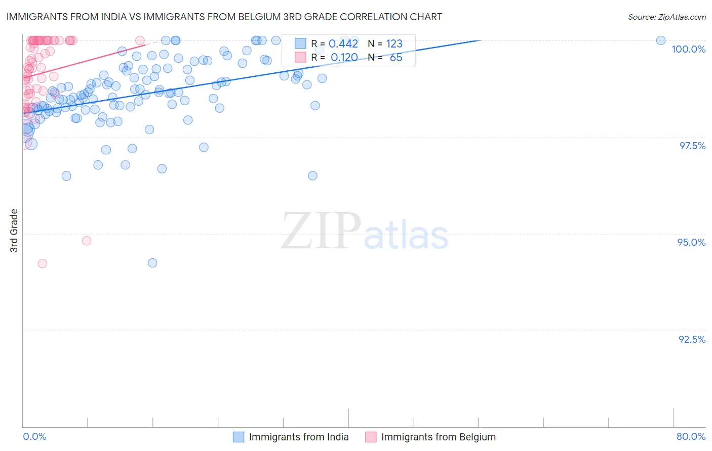Immigrants from India vs Immigrants from Belgium 3rd Grade Correlation Chart
