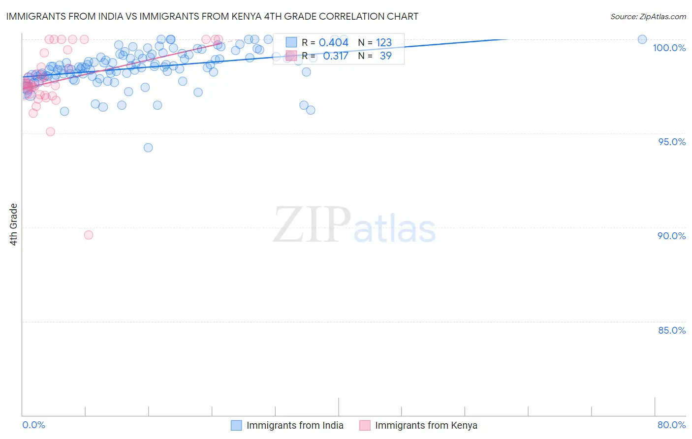 Immigrants from India vs Immigrants from Kenya 4th Grade Correlation Chart
