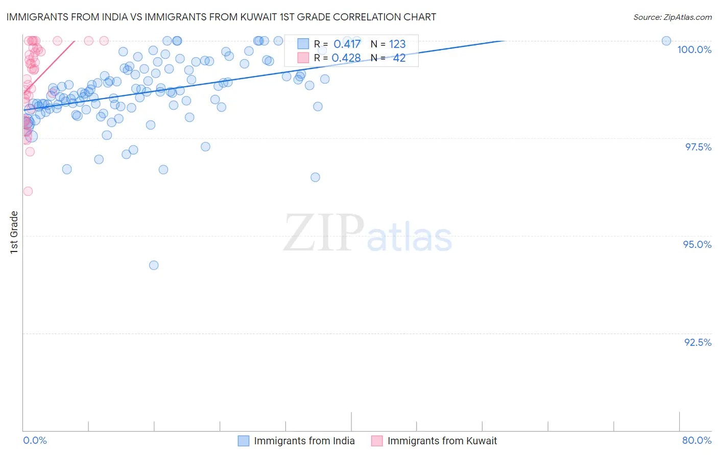 Immigrants from India vs Immigrants from Kuwait 1st Grade Correlation Chart