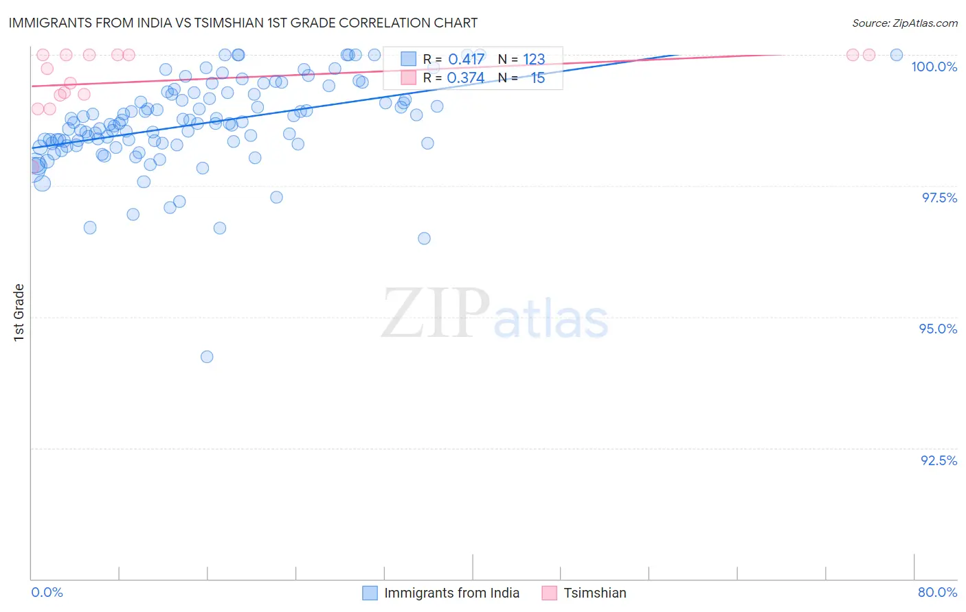 Immigrants from India vs Tsimshian 1st Grade Correlation Chart