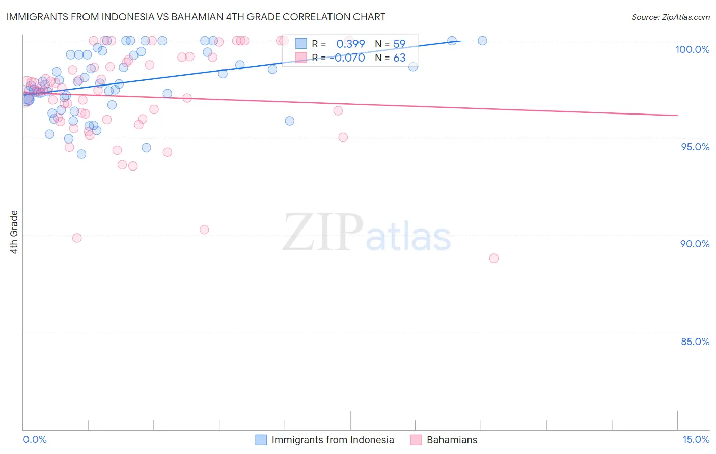 Immigrants from Indonesia vs Bahamian 4th Grade Correlation Chart