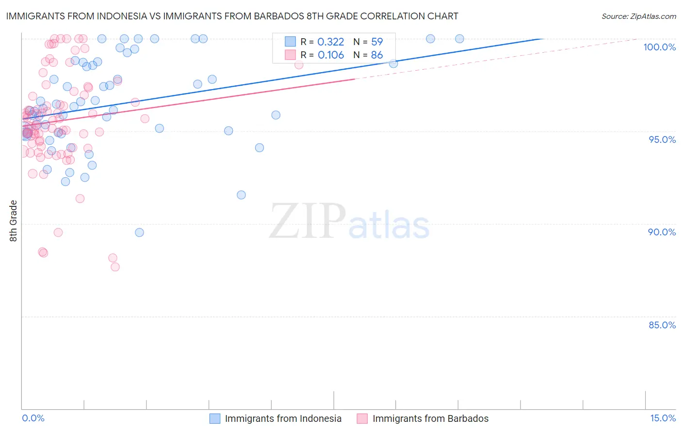 Immigrants from Indonesia vs Immigrants from Barbados 8th Grade Correlation Chart