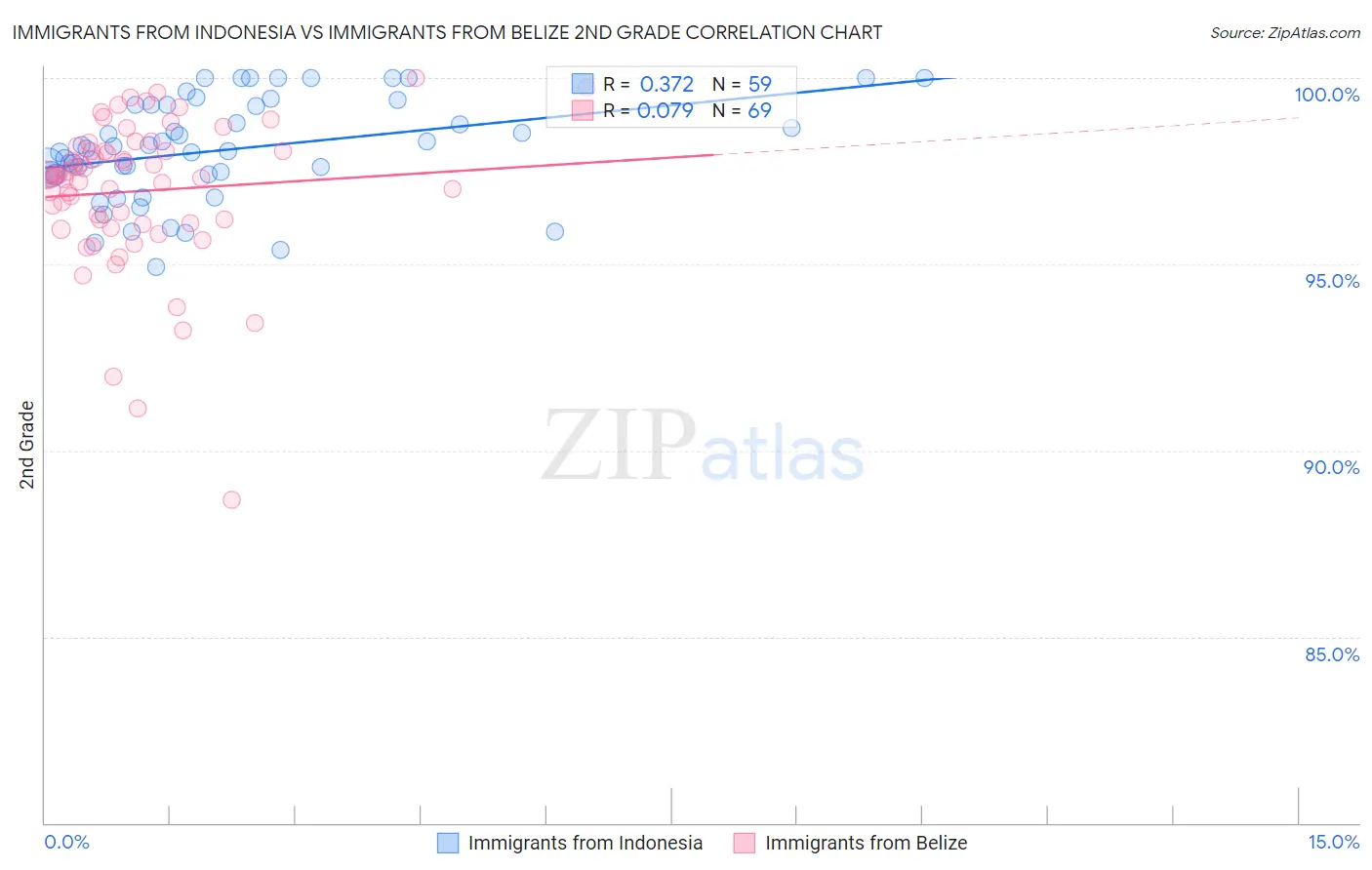 Immigrants from Indonesia vs Immigrants from Belize 2nd Grade Correlation Chart