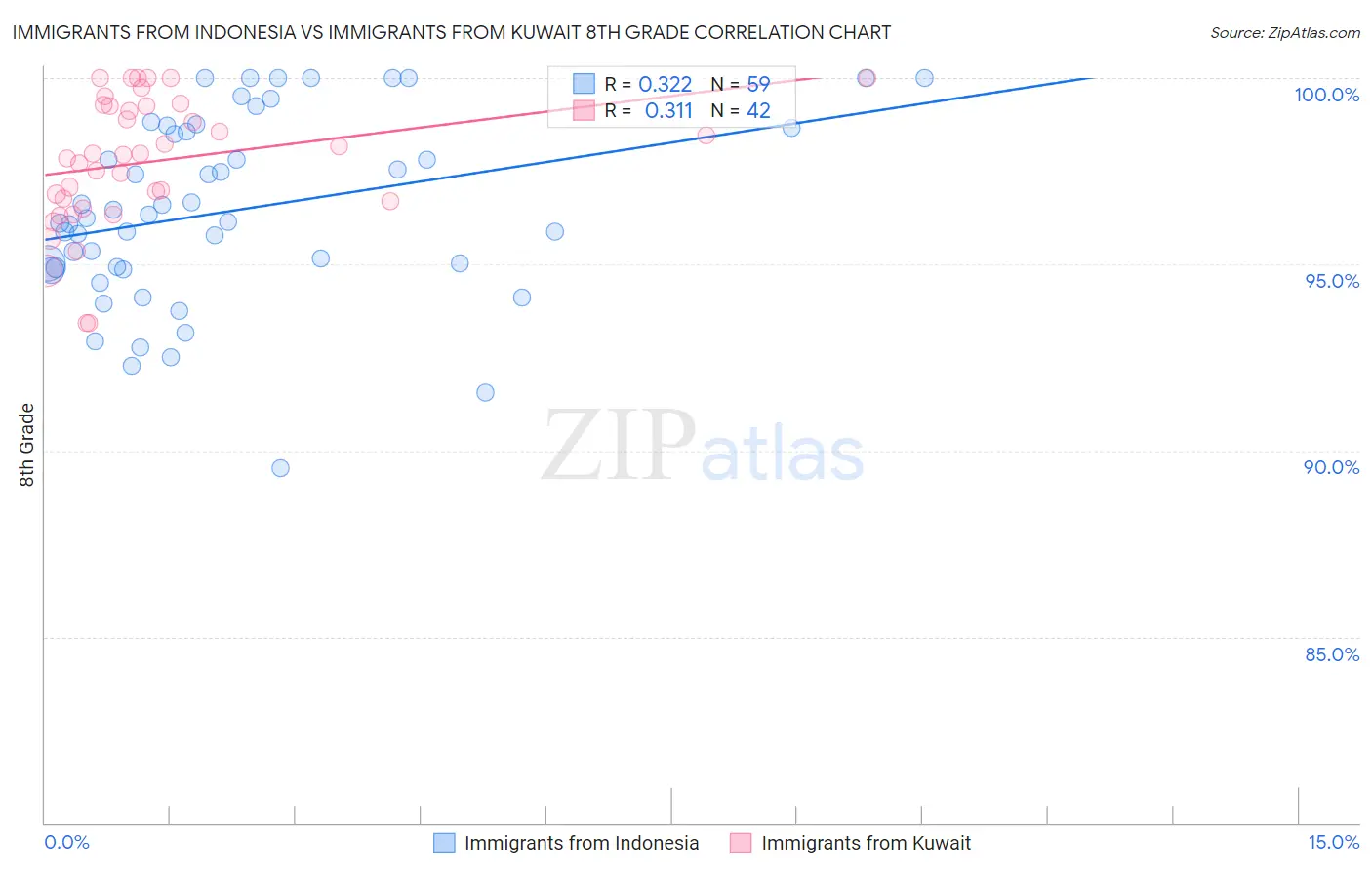 Immigrants from Indonesia vs Immigrants from Kuwait 8th Grade Correlation Chart