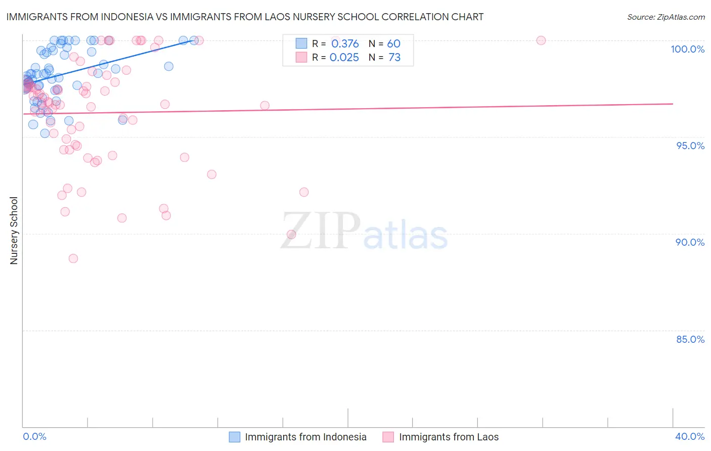 Immigrants from Indonesia vs Immigrants from Laos Nursery School Correlation Chart