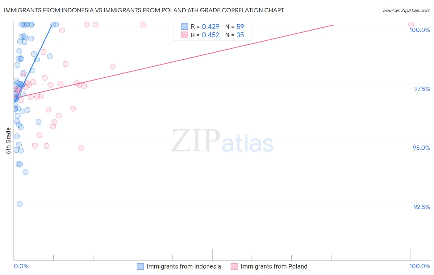 Immigrants from Indonesia vs Immigrants from Poland 6th Grade Correlation Chart