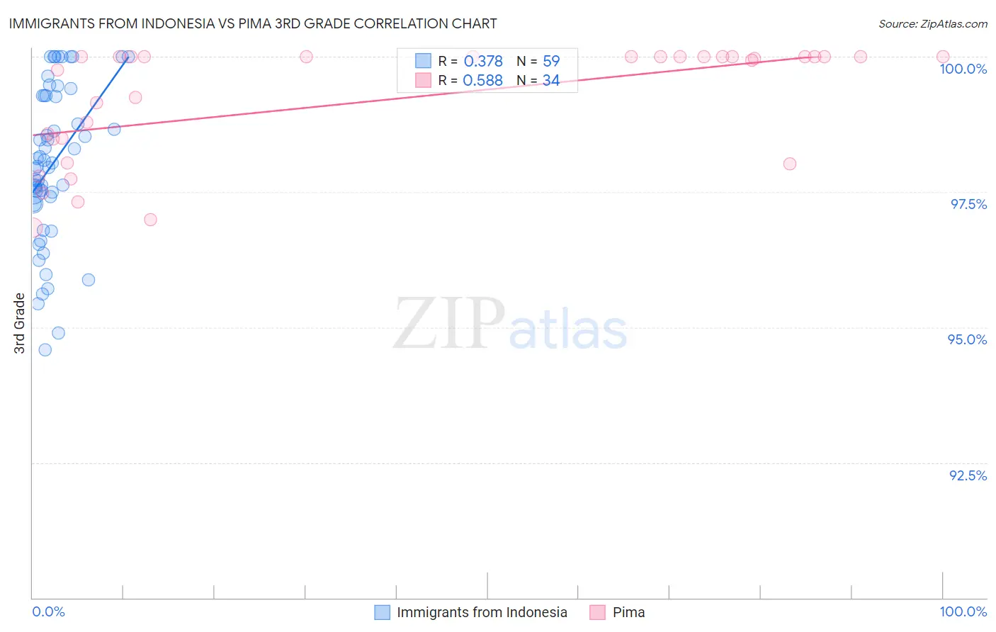 Immigrants from Indonesia vs Pima 3rd Grade Correlation Chart