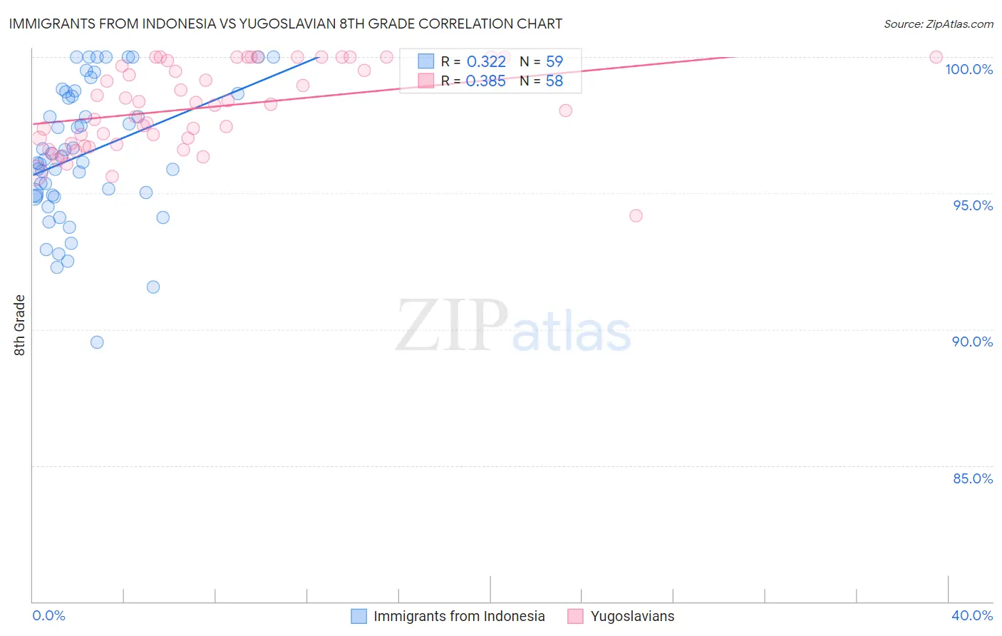 Immigrants from Indonesia vs Yugoslavian 8th Grade Correlation Chart