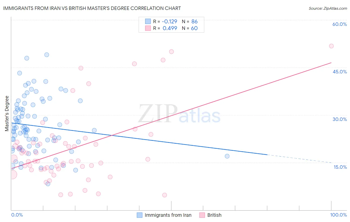 Immigrants from Iran vs British Master's Degree Correlation Chart